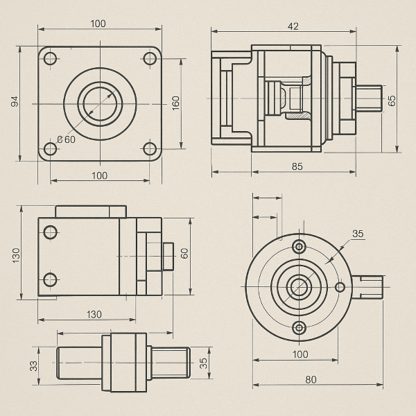 기하공차가 가장 빛을 발하는 순간은 여러 부품이 조립되어 동작해야 할 때입니다. 단순히 치수가 맞는다고 해서 조립이 잘 되는 것은 아닙니다. 부품이 정확한 방향과 위치로 정렬되지 않으면, 오작동이나 마모, 소음, 파손이 발생할 수 있습니다. 예를 들어, 기어 박스나 모터 하우징을 조립할 때, 축이 평행하게 맞춰져야 부드러운 회전이 가능하고, 구멍의 위치가 정확해야 나사 체결이 가능합니다. 이러한 조립 정확도를 확보하기 위해서는, 위치공차(예: 위치도), 자세공차(예: 직각도), 형상공차(예: 평면도)와 같은 기하공차가 반드시 필요합니다. 즉, 기하공차는 단순히 부품이 "만들어지는" 기준이 아니라, "정확히 동작하는" 제품을 만들기 위한 기본 조건입니다.